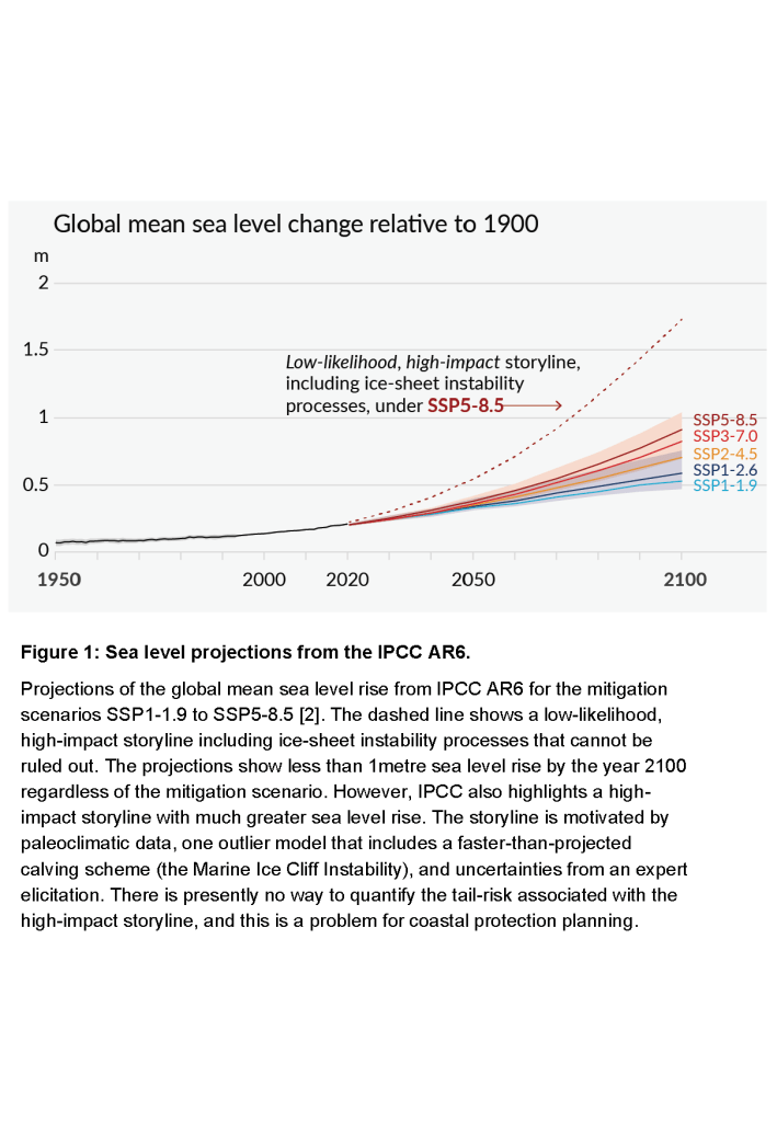 One of the most iconic images to come out of the last IPCC 6th asessment report (at least in my little corner of the climate science universe) is this one on sea level rise projections out to 2100.