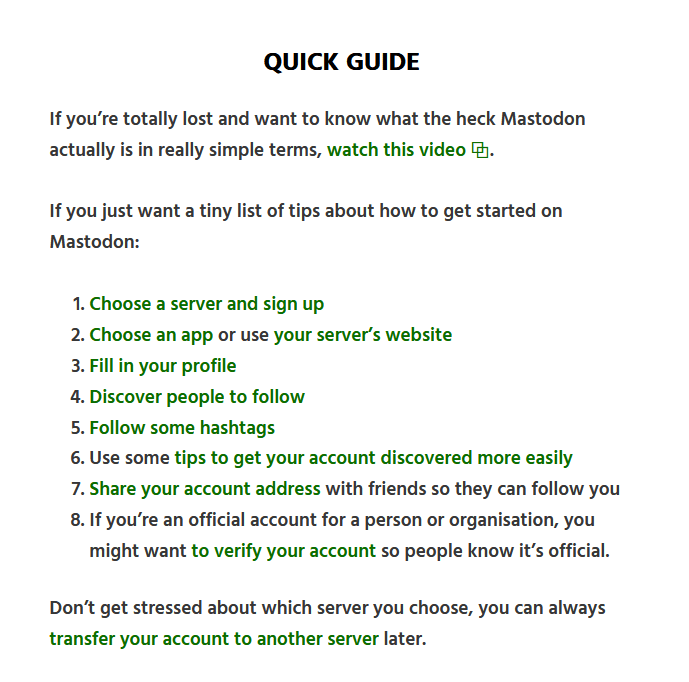 Here’s a really quick start guide from fedi.tips who you should probably also start by following (@feditips@mstdn.social). And while we’re on that subject, maybe try @FediFollows too- the same person (group?), highlights interesting accounts to follow under a particular theme every day. Worth a look.