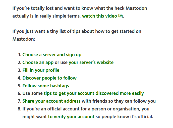 Here’s a really quick start guide from fedi.tips who you should probably also start by following (@feditips@mstdn.social). And while we’re on that subject, maybe try @FediFollows too- the same person (group?), highlights interesting accounts to follow under a particular theme every day. Worth a look.