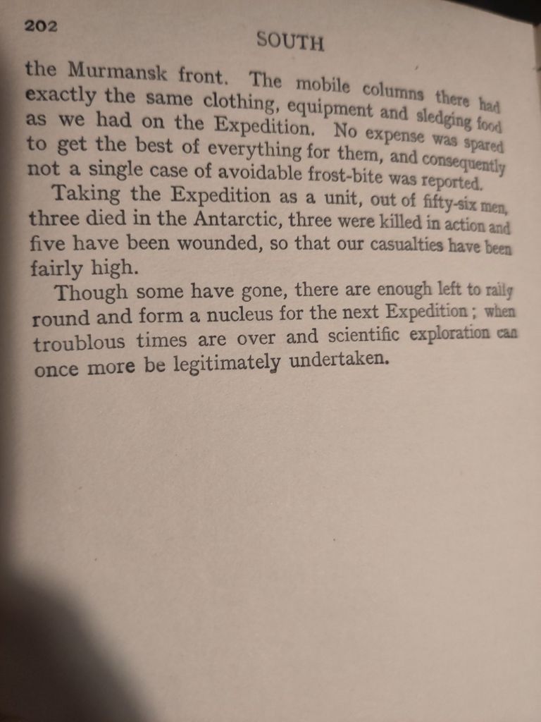 It’s a classic of the Antarctic and polar exploration literature in general, a ripping yarn as they say, but told in characteristically understated tone. And bookended with some rather repetitive and technically rather boring details on sailing in the pack ice, clearly not an undertaking to be underestimated.